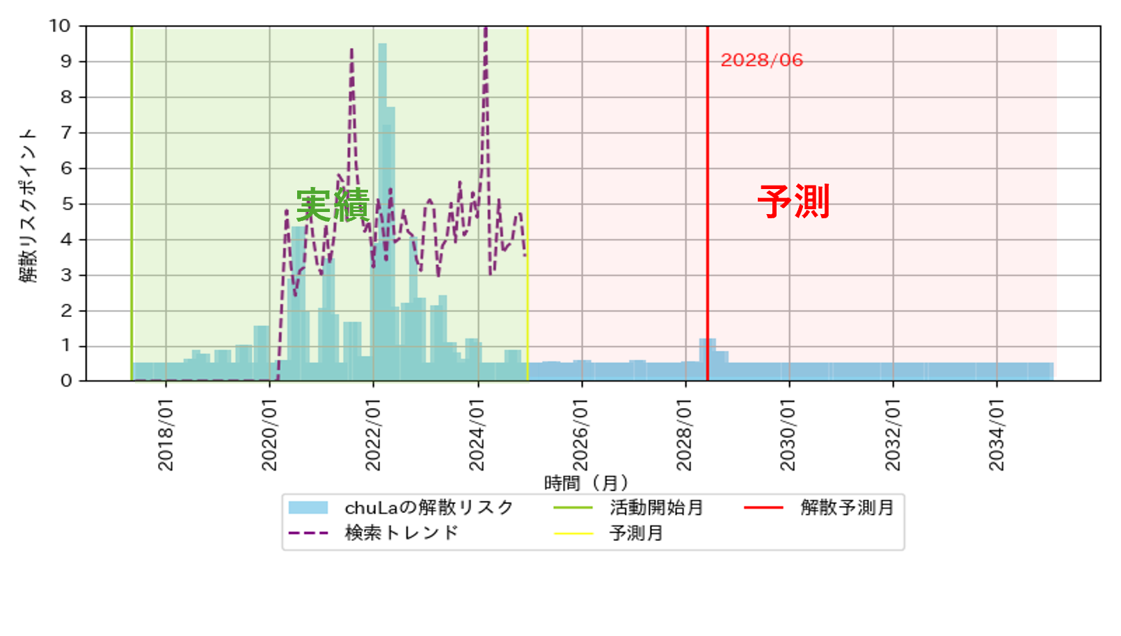- 解散予測月:最も解散リスクが高まる月を示すライン。