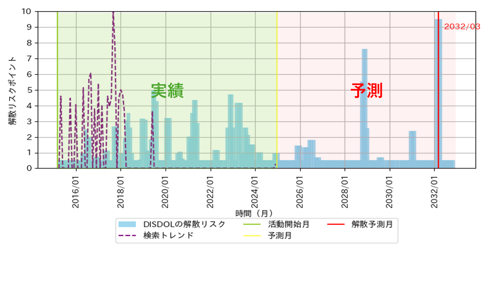 - 解散予測月:最も解散リスクが高まる月を示すライン。